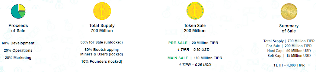 Распределение токенов TIPR будет происходить в течение 2 недель с даты закрытия основного токена продаж. Тип токена - ERC20. Поставка исправлена, больше нет проблем. Непрозрачное доказательство первичной продажи будет сожжено.